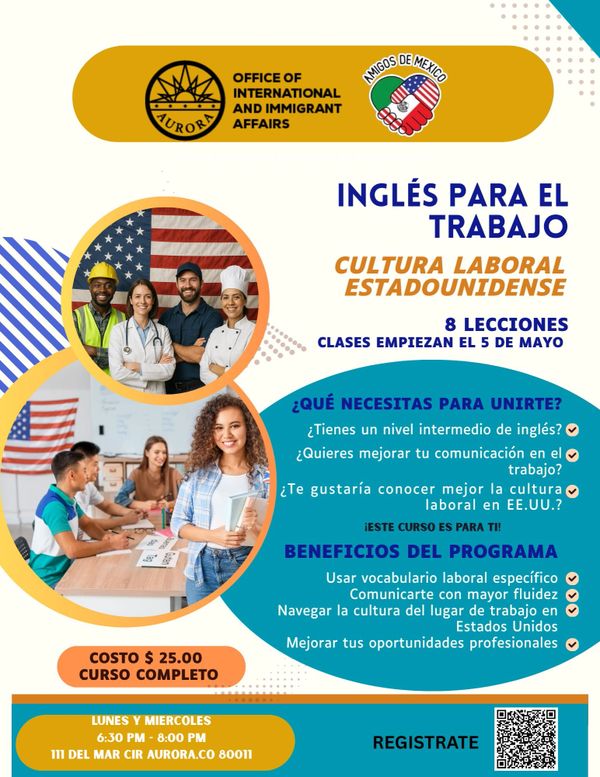Este logro no habría sido posible sin el invaluable apoyo de la Colorado Health Foundation y la Oficina de Asuntos Internacionales e Inmigrantes y Refugiados de Aurora, que han sido fundamentales en la creación y desarrollo de estos talleres. Gracias a su respaldo, hemos podido ofrecer un programa de gran impacto que fortalece a las comunidades inmigrantes y refugiadas, promoviendo la inclusión y el acceso a recursos fundamentales para su bienestar.
